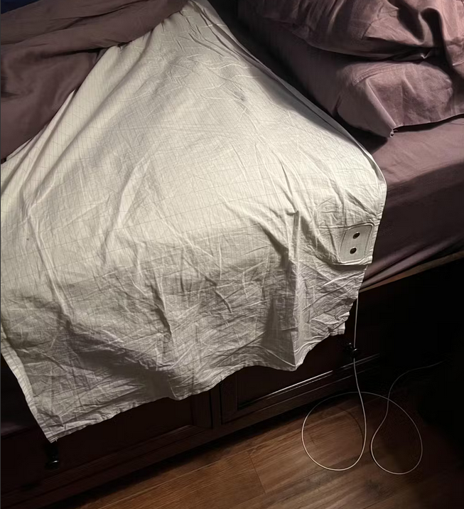 The Grounding Technology works by having your knees placed on a bedsheet made from a special conductive material.